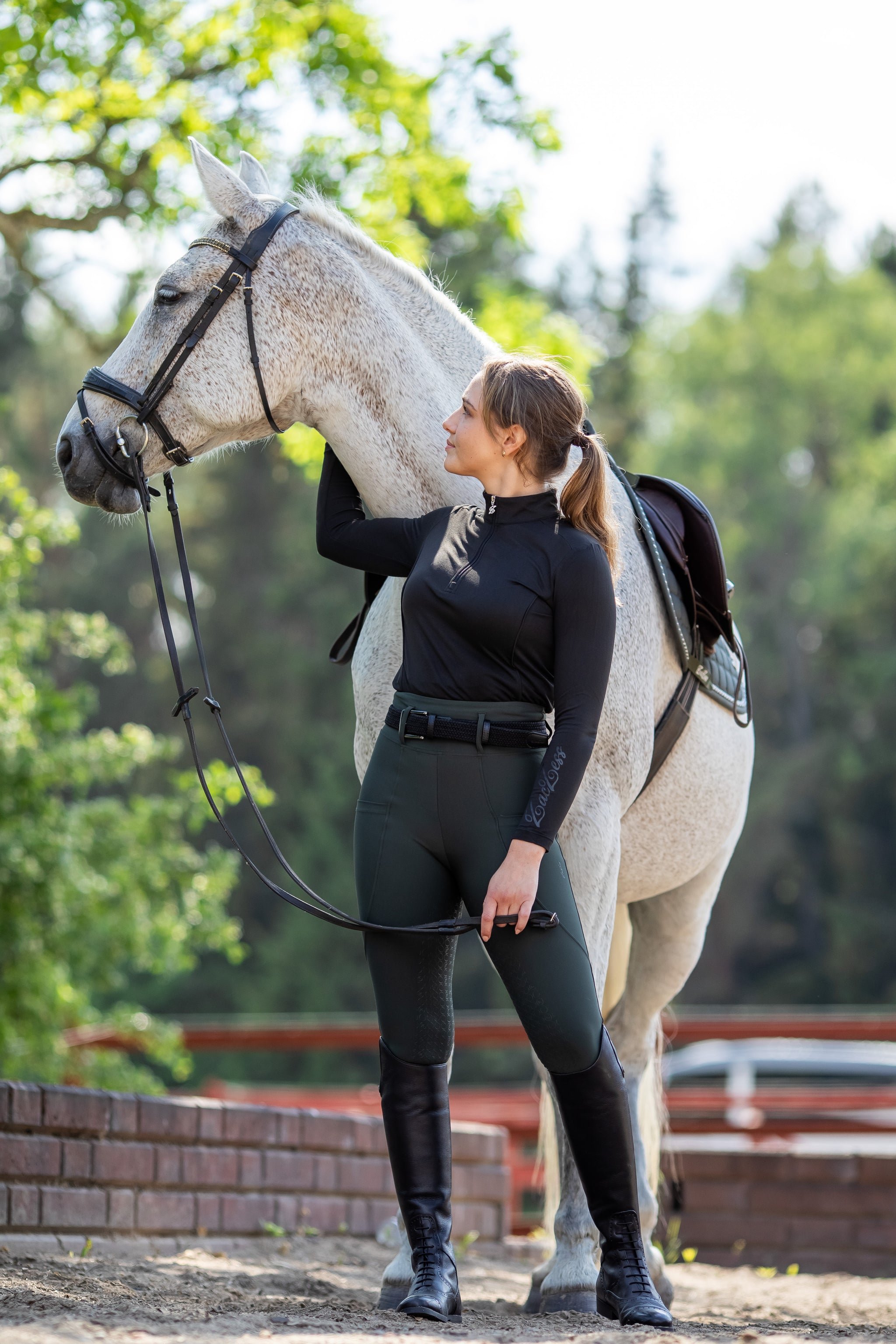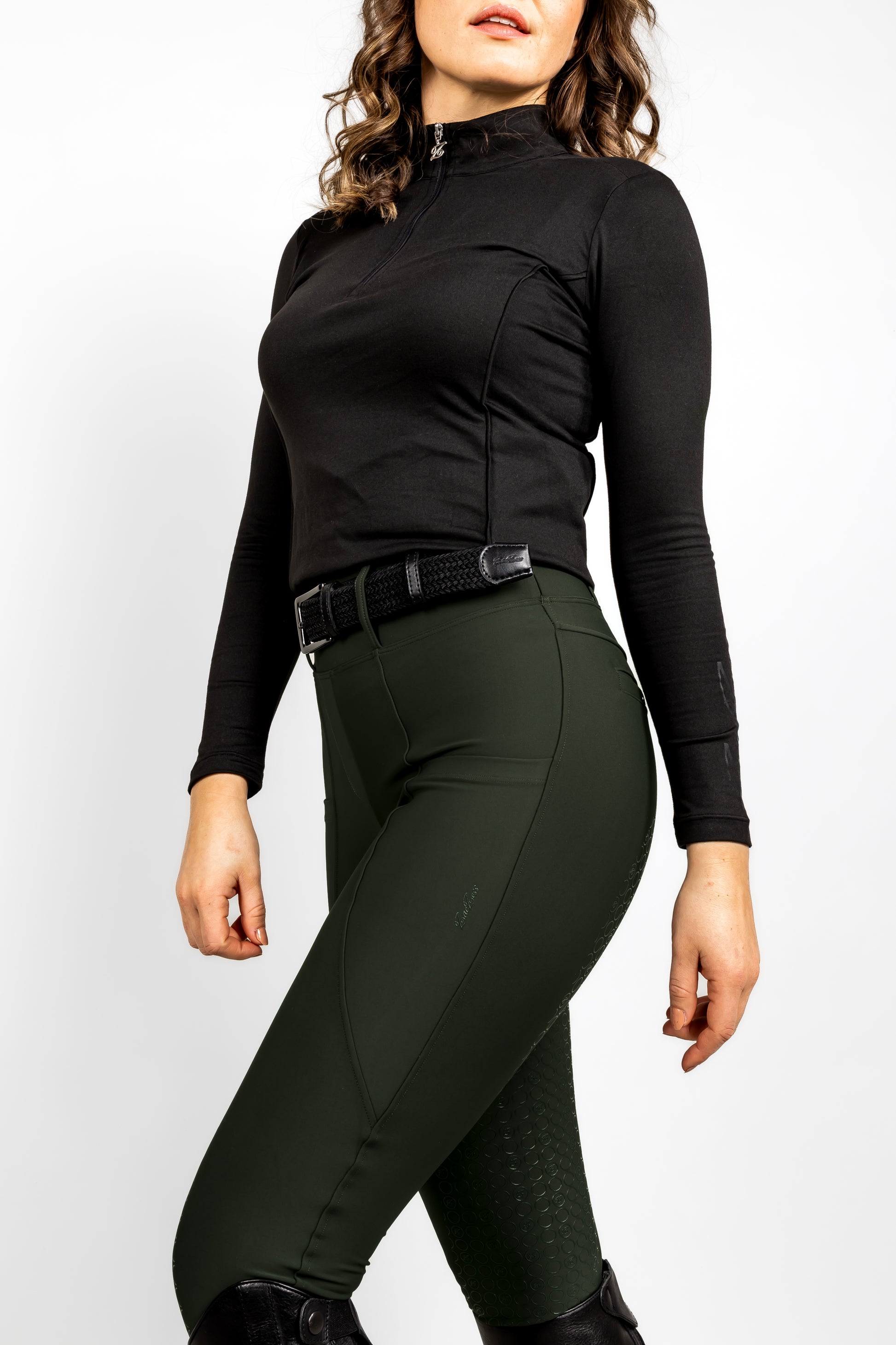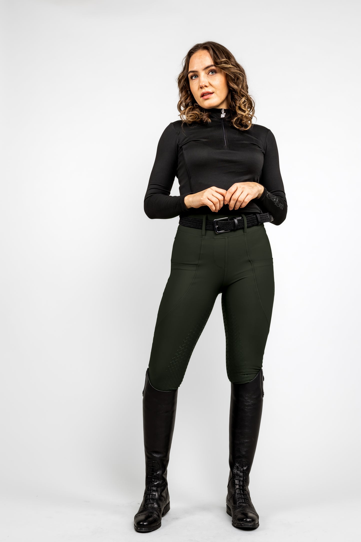 Our London Hybridleggings in Half Grip combine the classic look of breeches with the unbeatable comfort of leggings.