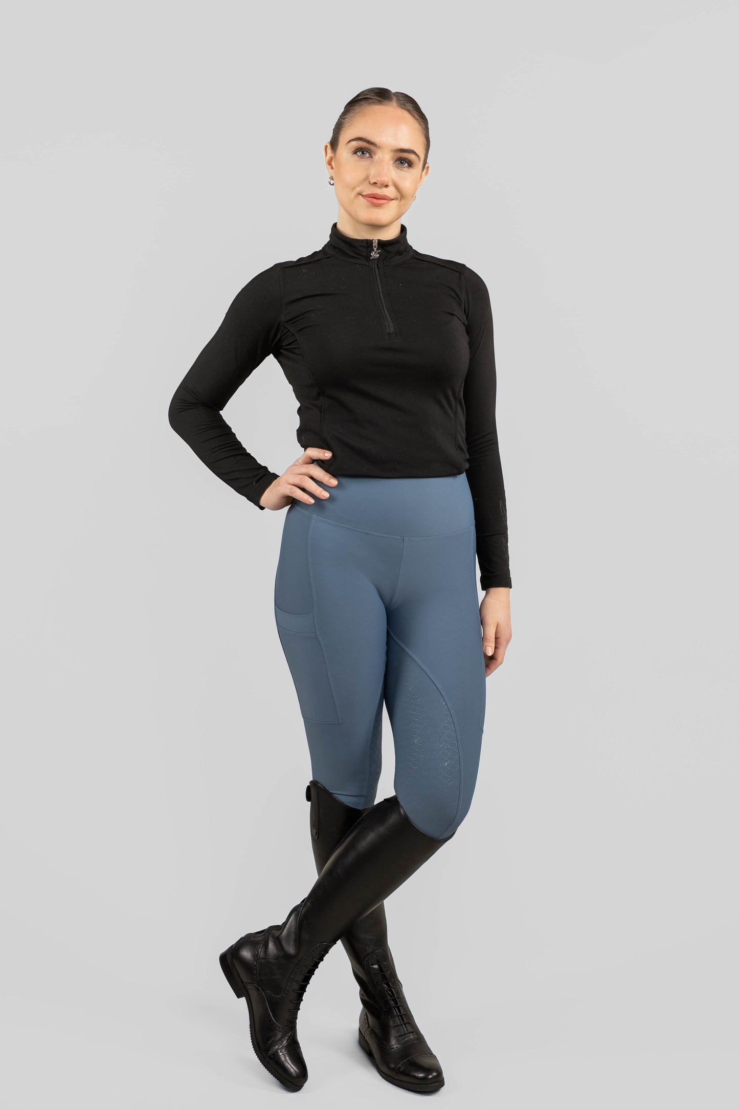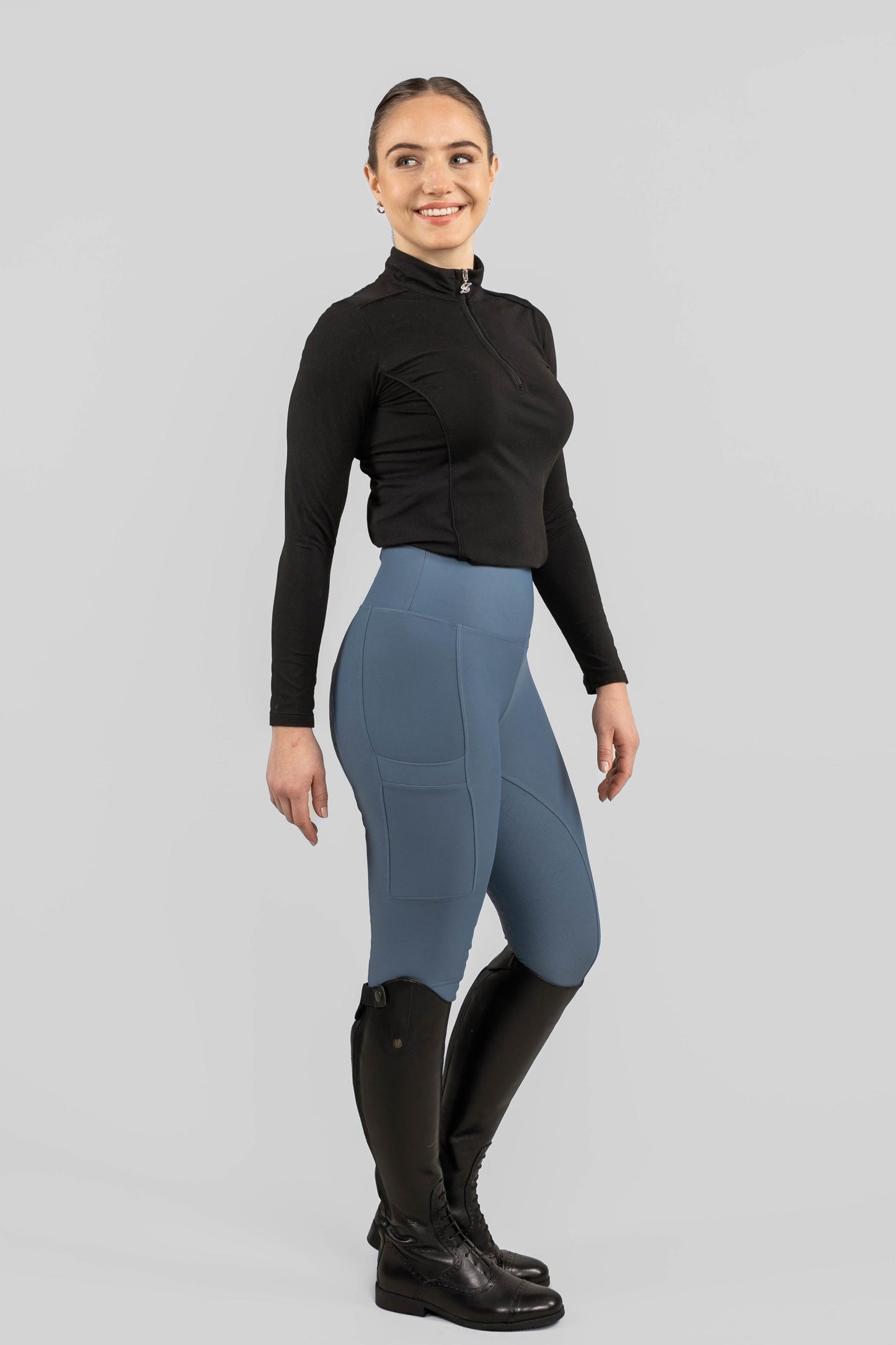 Modern design meets function in our best-selling riding leggings with half grip, made from a super stretchy, four-way stretch material that shapes to your body and provides optimal support in the saddle.