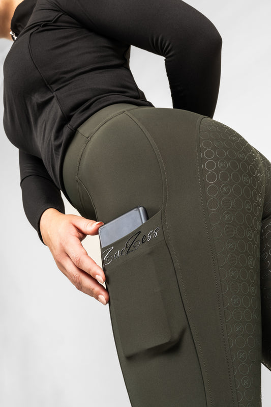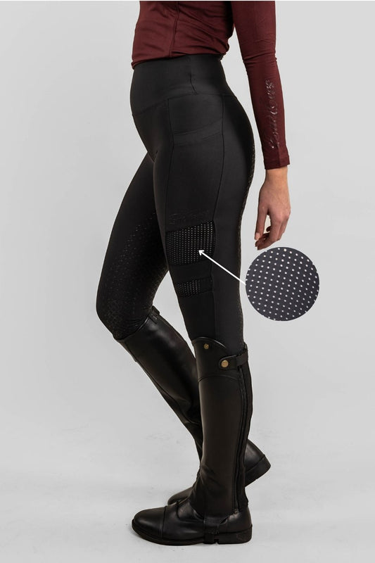 Our riding leggings are designed to fit all body shapes. The leggings' high waist and compressive material provide support and unbeatable comfort. We want you to feel comfortable, mobile, and boosted in confidence when wearing any of our riding leggings.