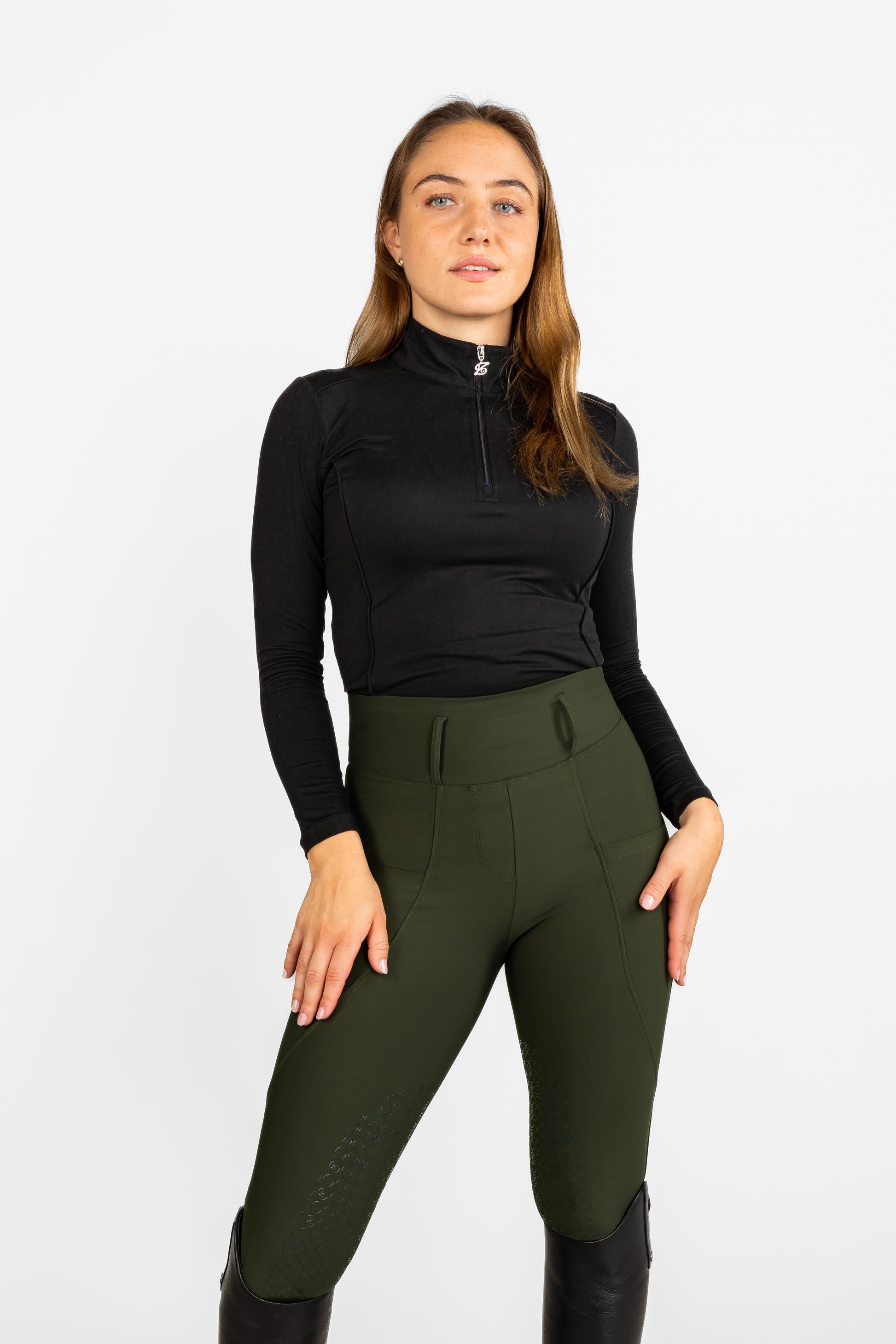 Korkea vyötärö, tyylikkäät yksityiskohdat, vyölenkit ja kaksi tilavaa puhelintaskua – kaikki mitä tarvitset sekä tyyliin että toimivuuteen satulassa ja tallissa.