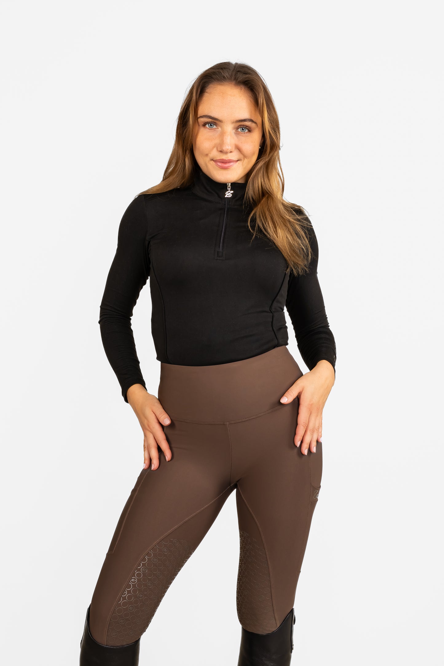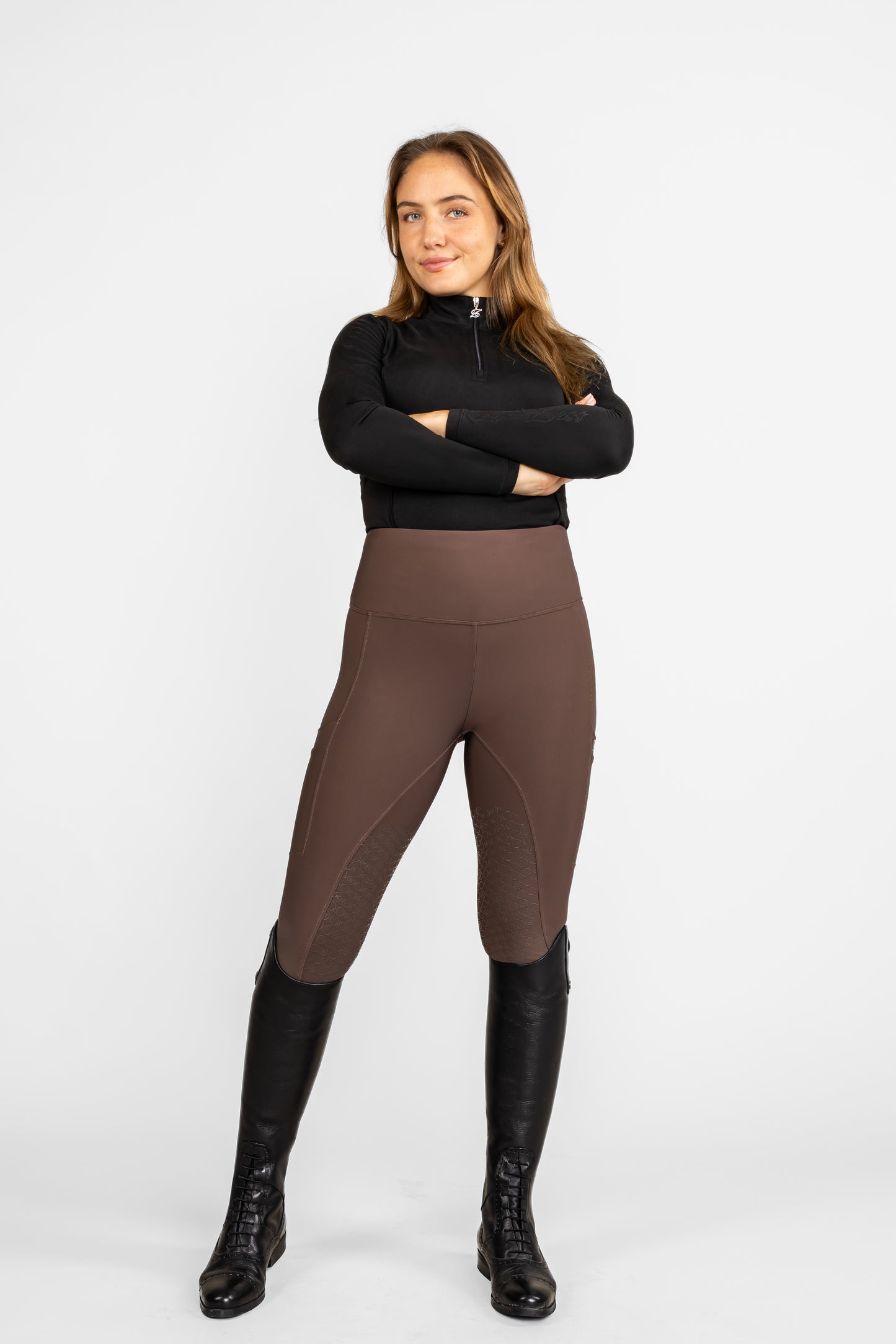 Modern design möter funktion i våra bästsäljande ridleggings i halvskoning, tillverkade i ett superstretchigt, fyrvägsstretch-material som formar sig efter din kropp och ger optimalt stöd i sadeln.