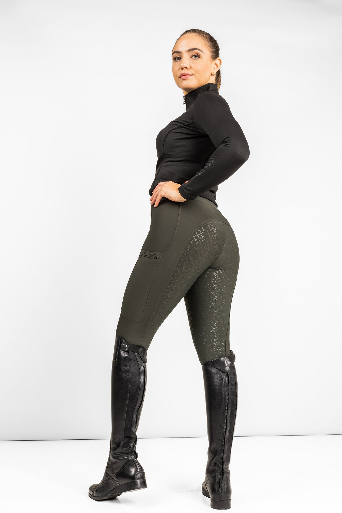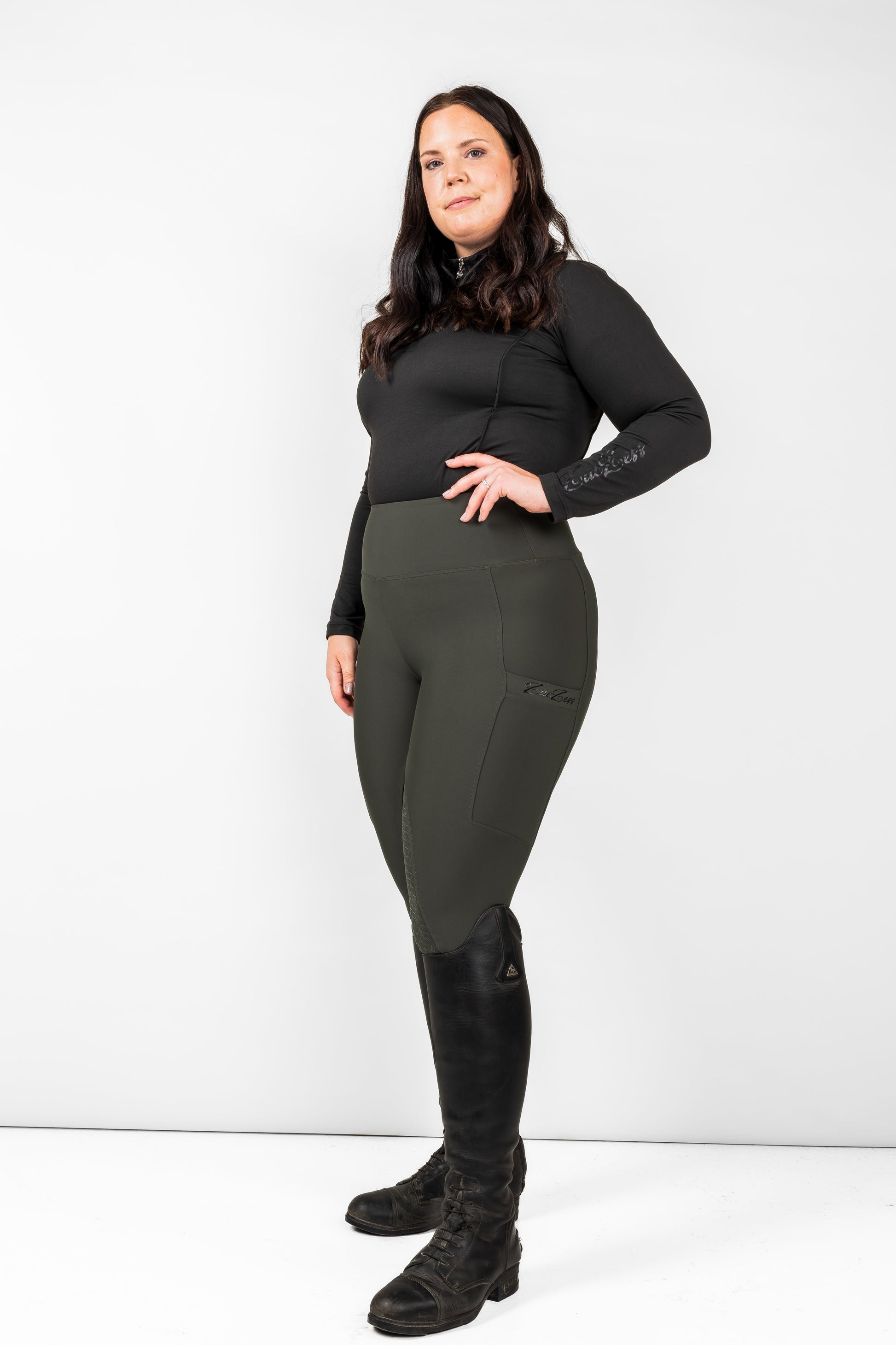 Modern design möter funktion i våra bästsäljande ridleggings, tillverkade i ett superstretchigt, fyrvägsstretch-material som formar sig efter din kropp och ger optimalt stöd i sadeln.